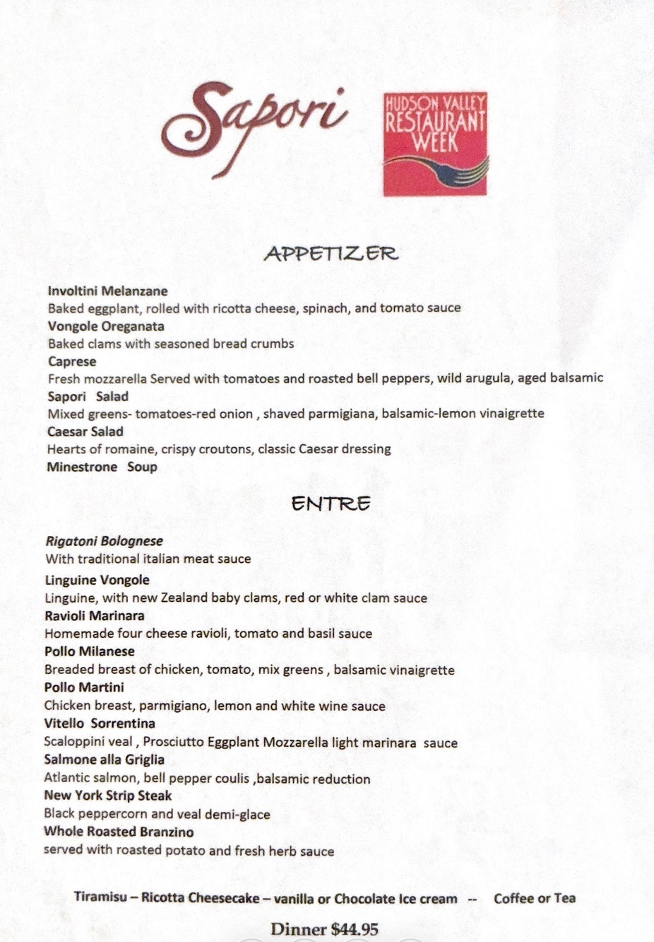 From March 2nd until March 15, Sapori white plains participates in restaurants week Hudson valley